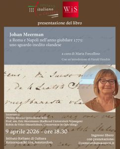 L’Istituto Italiano di Cultura di Amsterdam, in collaborazione con Werkgroep Italië Studies, presenta Johan Meerman a Roma e Napoli nell’anno giubilare 1775: uno sguardo inedito olandese a cura di Maria Forcellino – con un’introduzione di Harald Hendrix. Roma, Edizioni Quasar, 2025 Il volume presenta il Giornale di viaggio manoscritto del “Grand Tour” di due anni […]